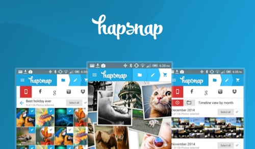 New features of the app includes: Authentication via Username/Password, Facebook account, Google account; Loading images from Device, Instagram, Picasa, Facebook; Grouping images by album or time; Image editor; Uploading images to Hapsnap server; Payment via Visa card or Paypal; Social sharing via Facebook and Email.